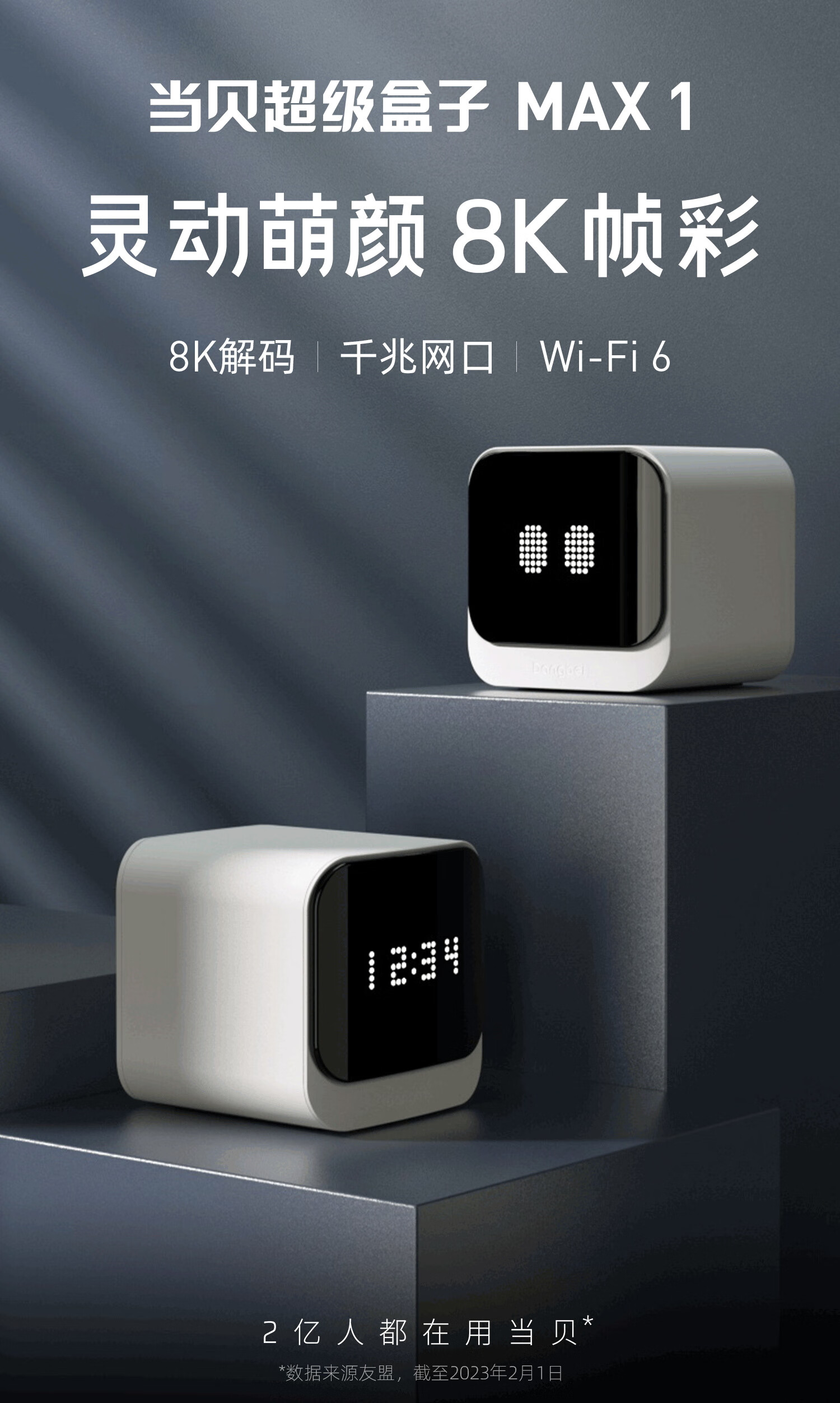 当贝 超级电视盒子MAX1 网络机顶盒 双频WiFi6 千兆网口 6G+64G 投屏HDR10 8K解码 炫酷灵动屏
